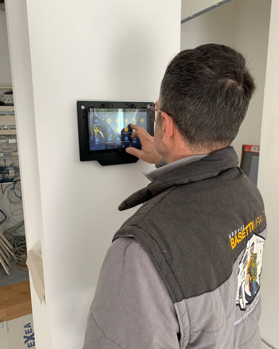 Cioè è un impianto Domotico di Vimar By Me Plus (di cui noi siamo partner) e integra: elettrico, TV, telefono e trasmissione dati, videocitofono, controllo luci, controllo tapparelle, controllo clima, antintrusione, videosorveglianza.
